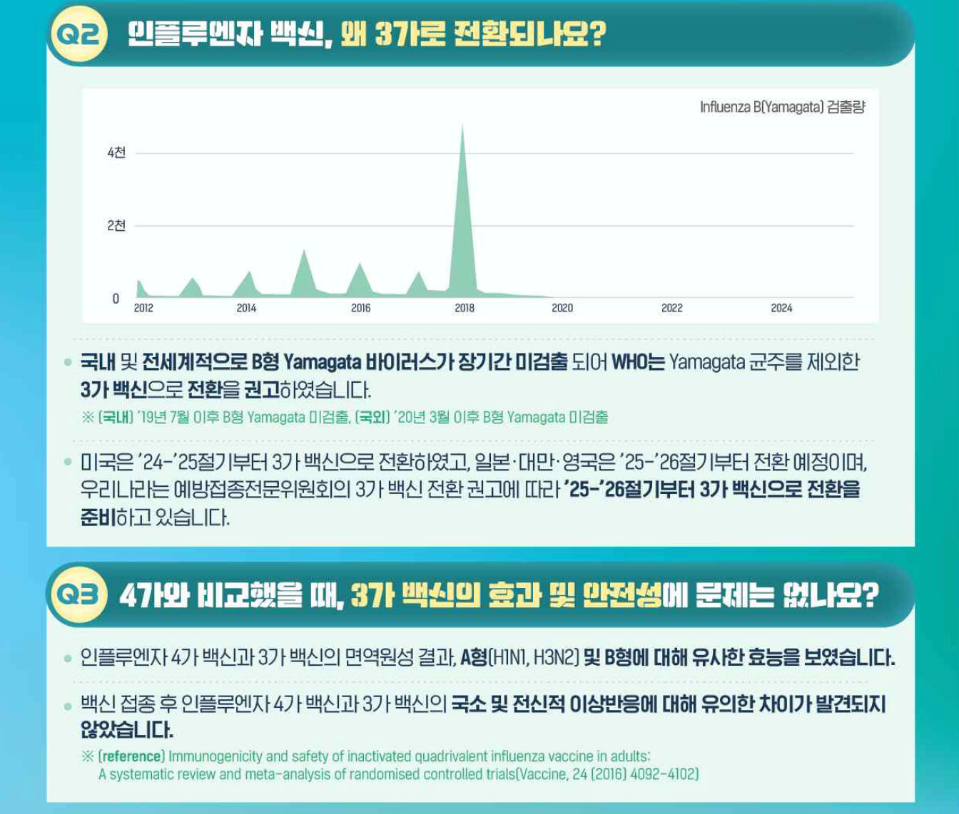 - 국가 무료접종 : 3가 백신 사용