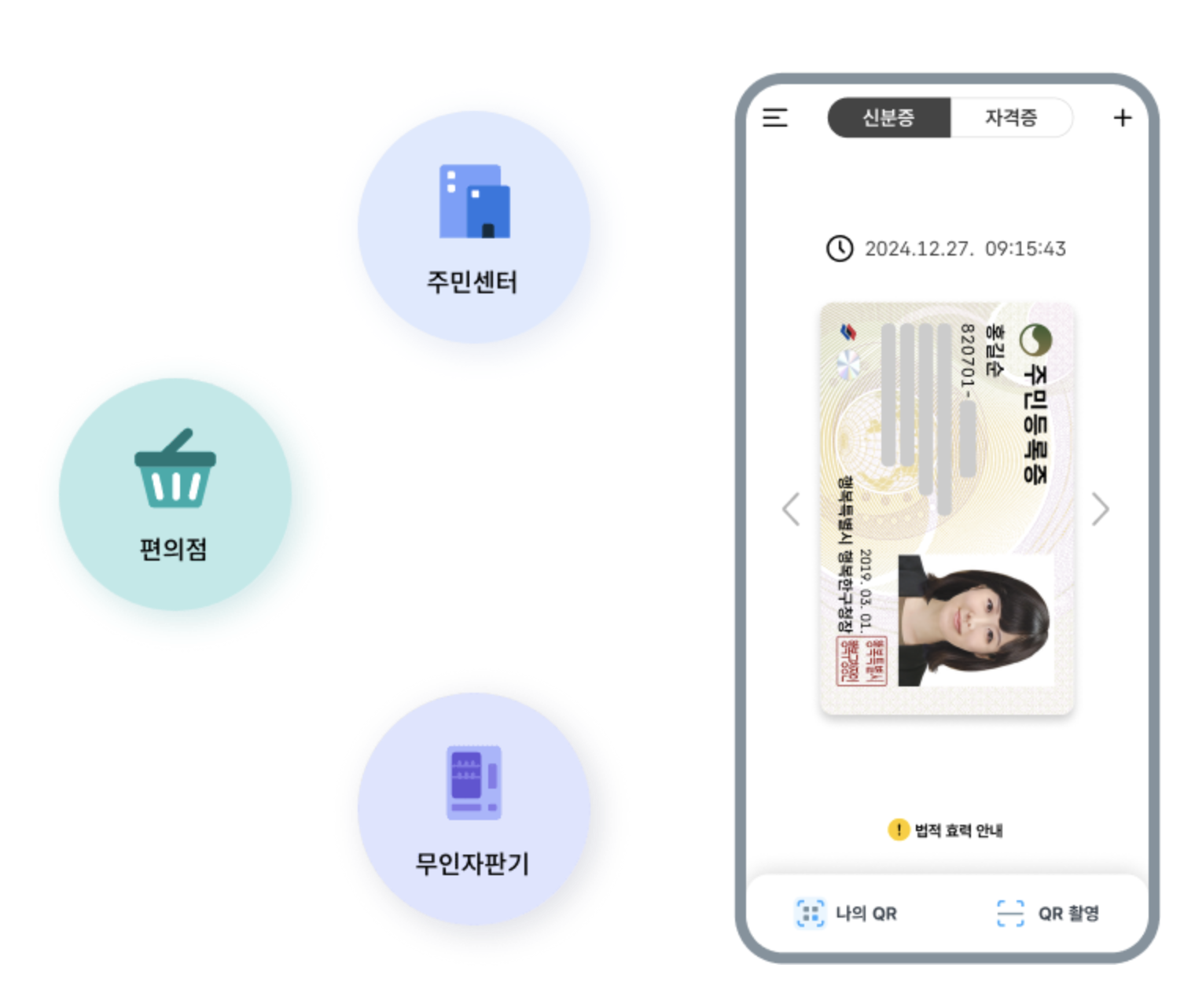 - 공공기관 및 민원업무 : 주민센터, 공공기관에서 실물 신분증과 동일한 효력