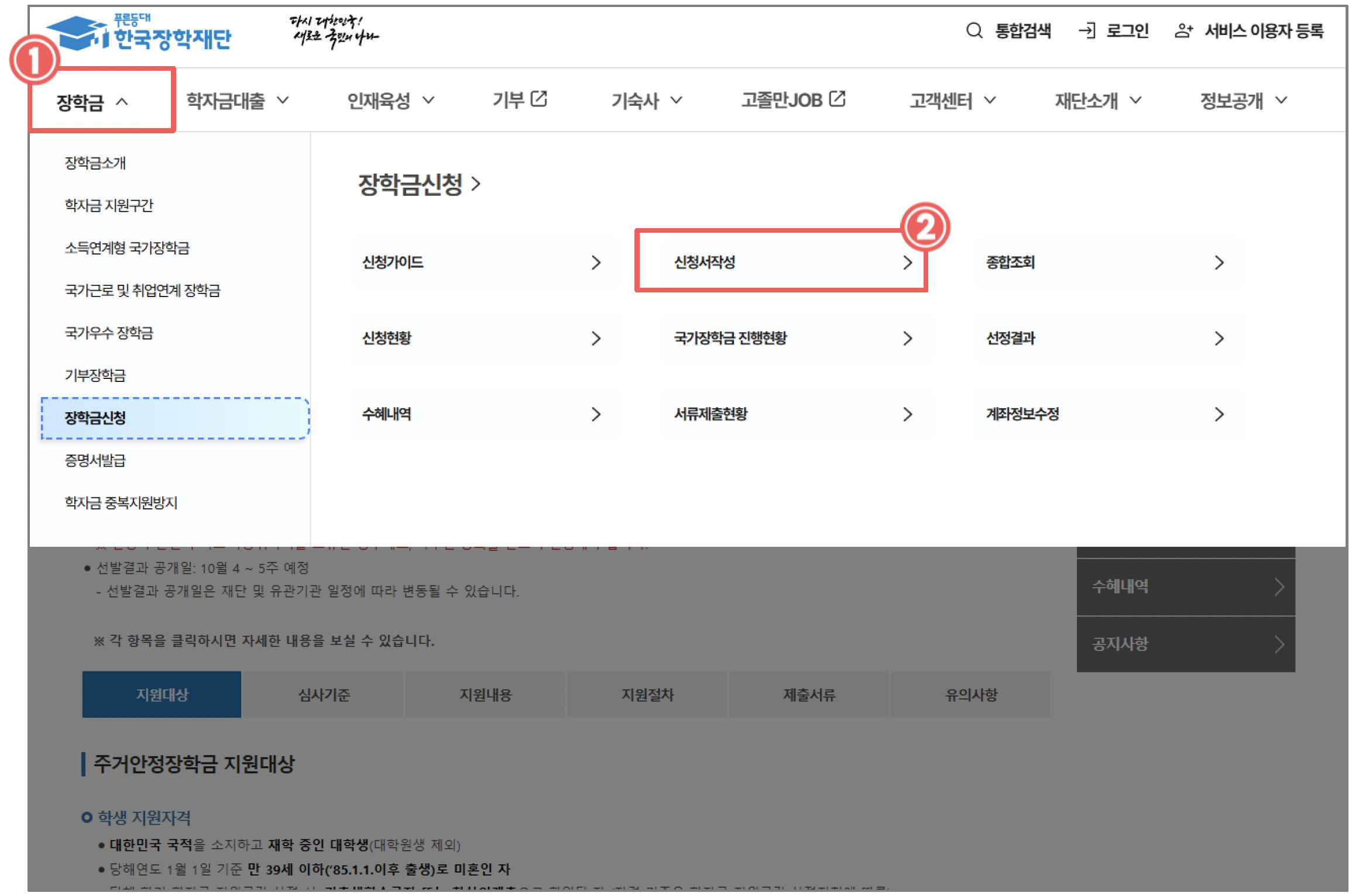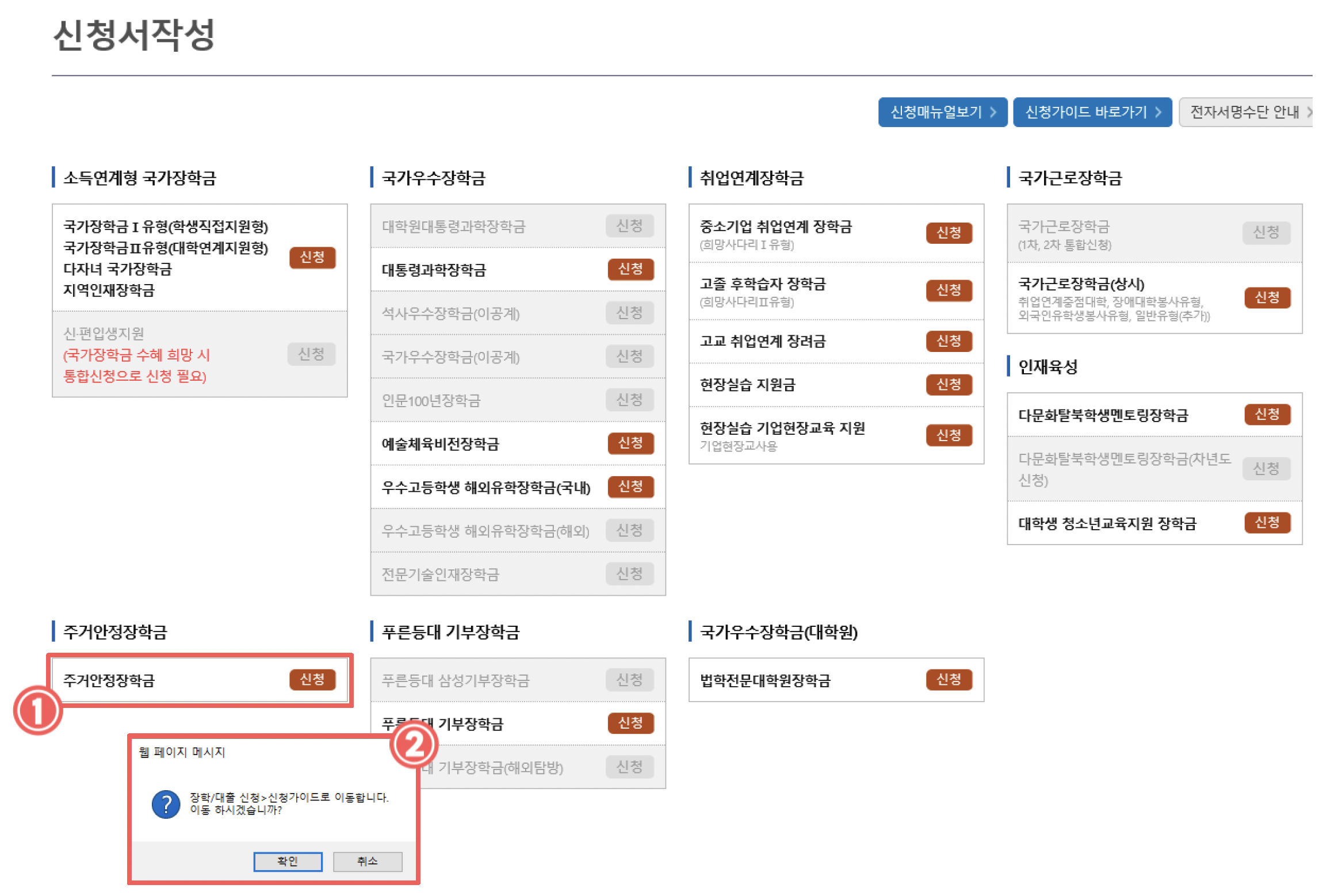 국가장학금 신청 기간에 함께 신청하면 됩니다. 따로 신청 창구가 있는 것이 아니라, 국가장학금 1차/2차 신청시 '주거안정장학금 신청' 항목에 체크하는 방식입니다.