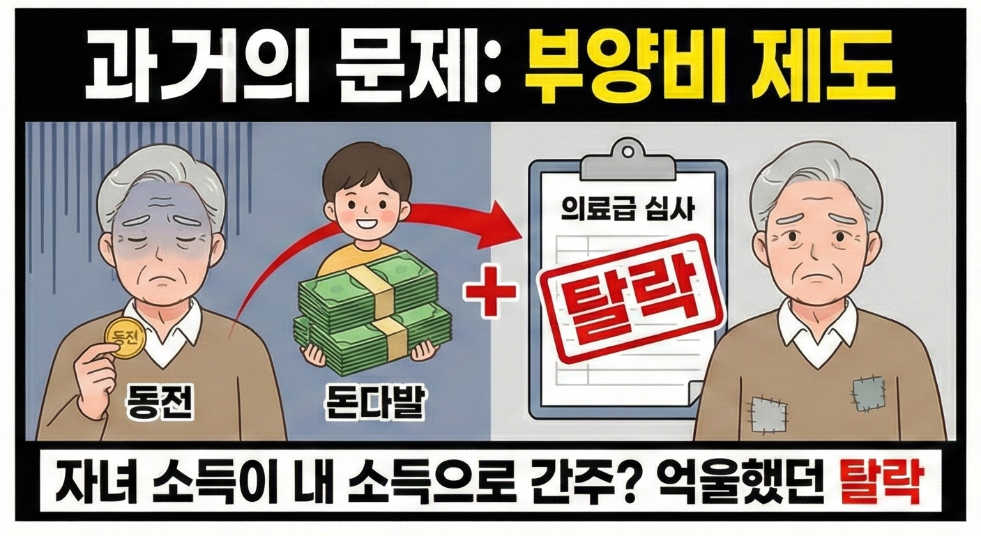 그동안 기초생활보장제도, 그중에서도 '의료급여'를 신청하러 주민센터에 갔다가 발길을 돌리시는 어르신들이 정말 많았습니다. 본인의 소득과 재산은 턱없이 부족해 당장 지원이 필요한 상황임에도 불구하고, "부양의무자(자녀 등)에게 소득이 있다"는 이유로 탈락했기 때문입니다.