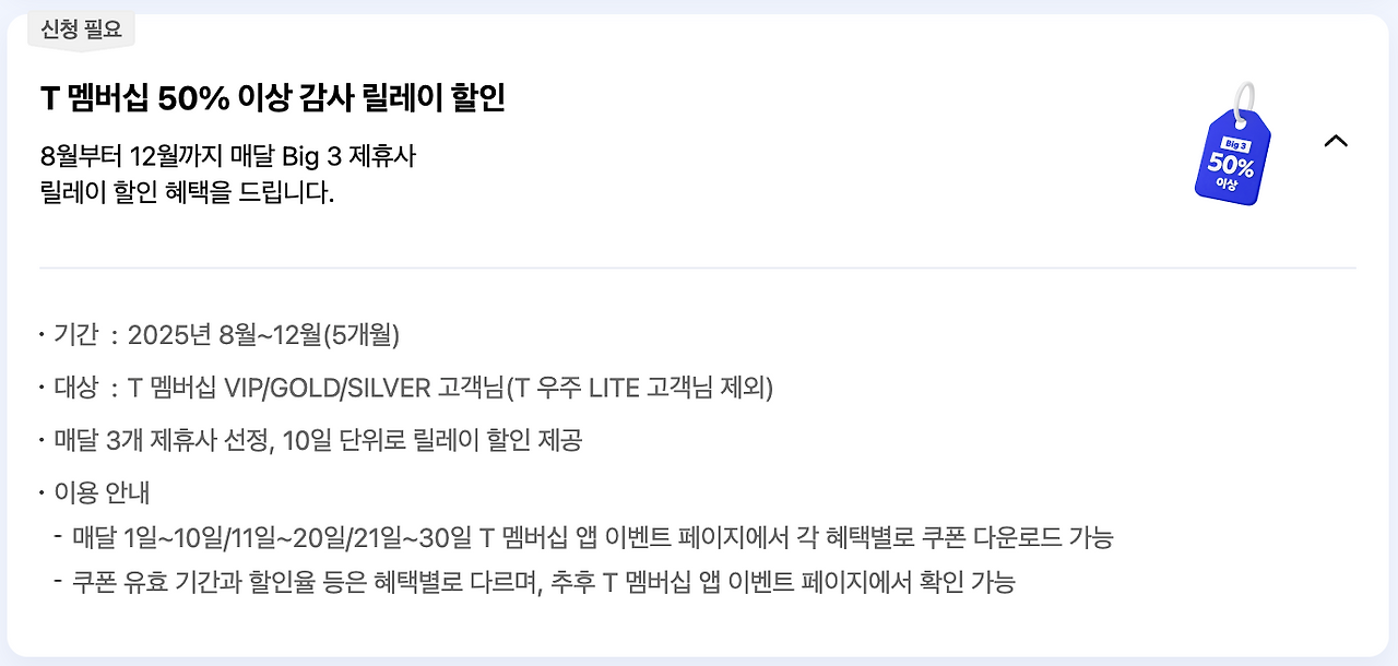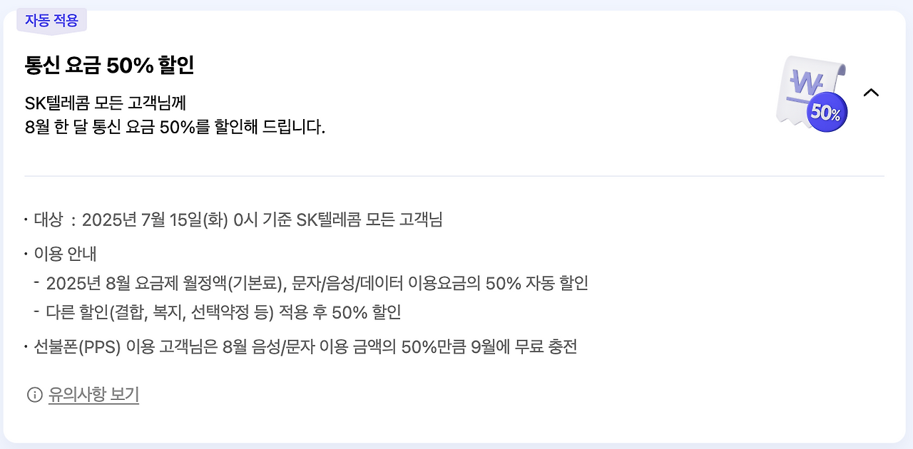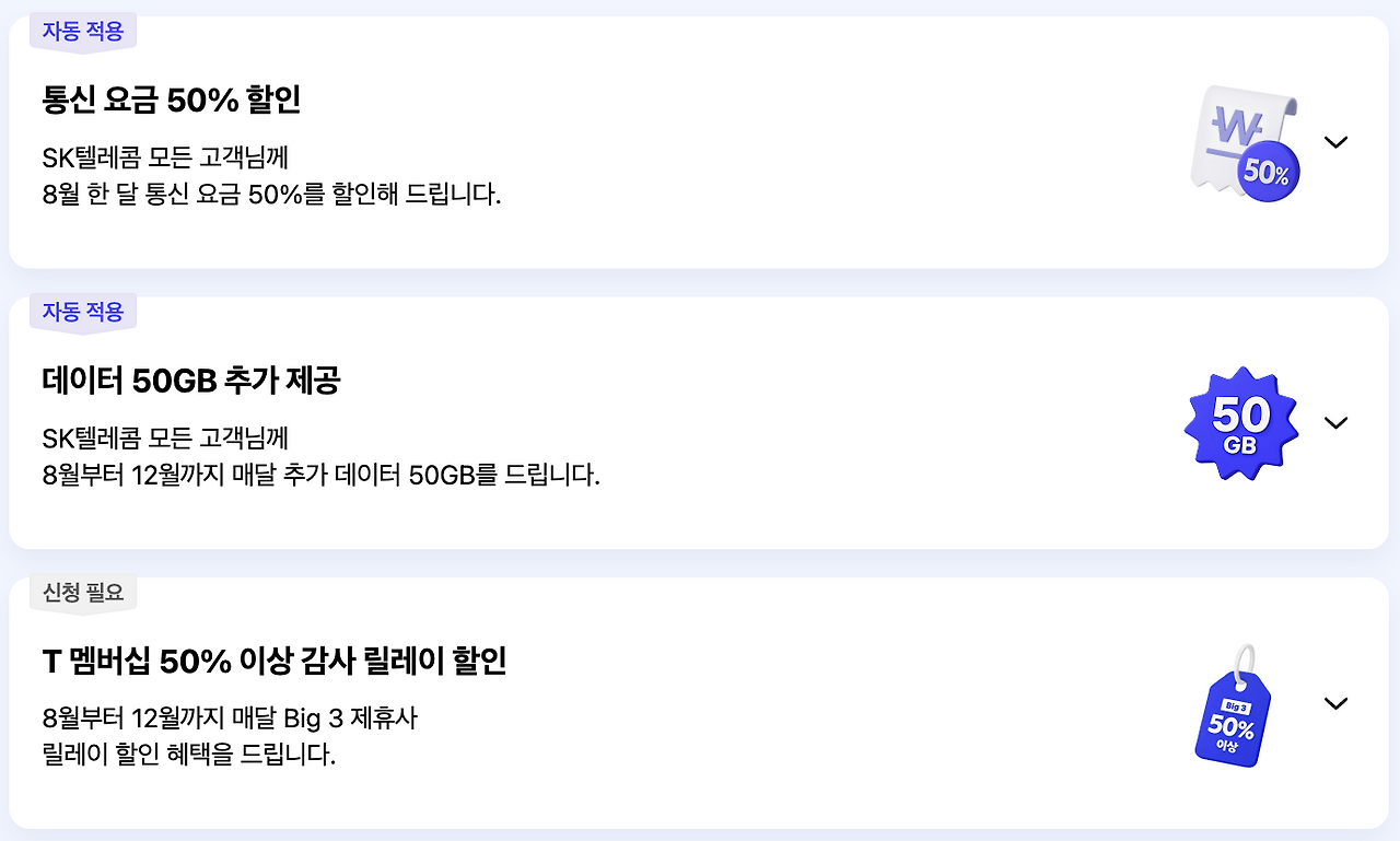 ✔️ 8월 요금 50% 감면 + 데이터 + 멤버십 혜택까지!